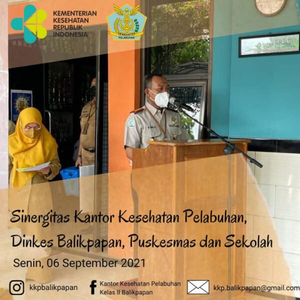 Balikpapan, 6 September 2021,Pelaksanaan Vaksinasi bagi pelajar di SMPN 12 dihadiri oleh Bapak Walikota Balikpapan H. Rahmad Mas’ud, SE didampingi oleh Kepala KKP Kelas II Balikpapan dr. M Zainul Mukhorobin, MMRS dan Kepala Dinas Kesehatan Kota Balikpapan dr.Andi Sri Juliarty, pada kesempatan tersebut Kepala KKP Balikpapan mengatakan KKP ikut berkontribusi…