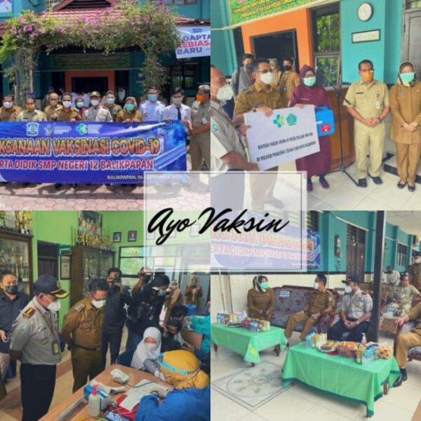 Balikpapan, 6 September 2021,Pelaksanaan Vaksinasi bagi pelajar di SMPN 12 dihadiri oleh Bapak Walikota Balikpapan H.Rahmad Mas’ud,SE didampingi oleh Kepala KKP Kelas II Balikpapan dr. M Zainul Mukhorobin, MMRS dan Kepala Dinas Kesehatan Kota Balikpapan dr. Andi Sri Juliarty, pada kesempatan tersebut Kepala KKP Balikpapan mengatakan KKP ikut berkontribusi terhadap pelaksanaan vaksinasi bagi pelajar di wilayah Puskesmas Telagasari dan berharap dengan adanya vaksinasi ini dapat mempercepat tercapainya herd immunity dikalangan pelajar.Pelaksanaan vaksinasi ini terselenggara atas sinergitas Kantor Kesehatan Pelabuhan Kelas II Balikpapan Dinas Kesehatan Kota Balikpapan,Puskesmas Telagasari dan  Sekolah SMP dan SMK#kkpbalikpapan