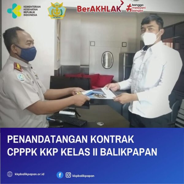 Selamat kepada Mochammad Sofian, SKM atas kelulusannya sebagai Pegawai Pemerintah Dengan Perjanjian Kerja pada Kantor Kesehatan Pelabuhan Kelas II Balikpapan dan telah melaksanakan penandatanganan Perjanjian Kerja dengan Kepala KKP Kelas II Balikpapan dr. M. Zainul Mukhorobin, MMRS…