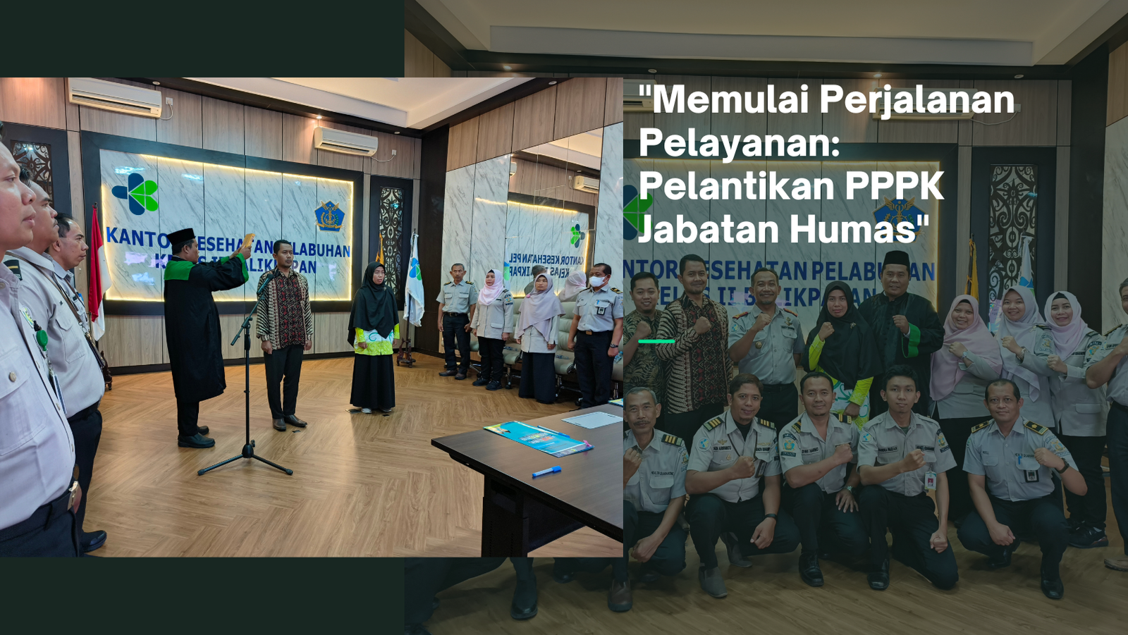 Kepala KKP Kelas II Balikpapan dr. M. Zainul Mukhorobin, MMRS melantik Pegawai Pemerintah dengan Perjanjian Kerja an Syu’ur Mubariq Rahman, S.Ikom di Ruang Rapat KKP Kelas II Balikpapan, menjadi PPPK (Pegawai Pemerintah dengan Perjanjian Kerja) dengan jabatan Pranata Ahli pertama Hubungan Masyarakat.