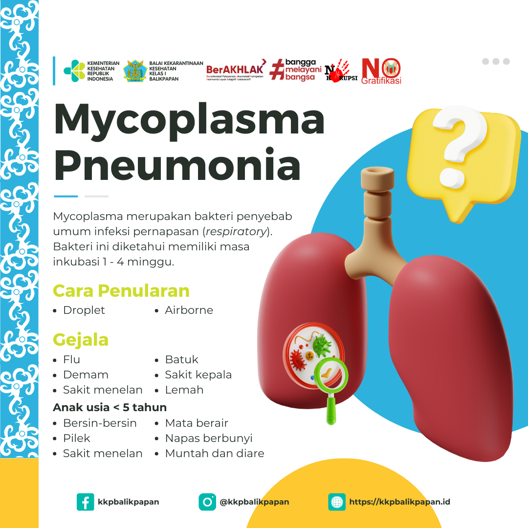 Gejala infeksi Mycoplasma pneumoniae bisa bervariasi, tetapi yang umum termasuk batuk kering yang berkepanjangan, demam, sakit tenggorokan, nyeri dada, dan kelelahan. Infeksi ini bisa menyebar dari orang ke orang melalui percikan udara saat batuk atau bersin, sehingga penting untuk menjaga kebersihan tangan dan praktik-praktik higienis lainnya untuk mencegah penyebaran infeksi.