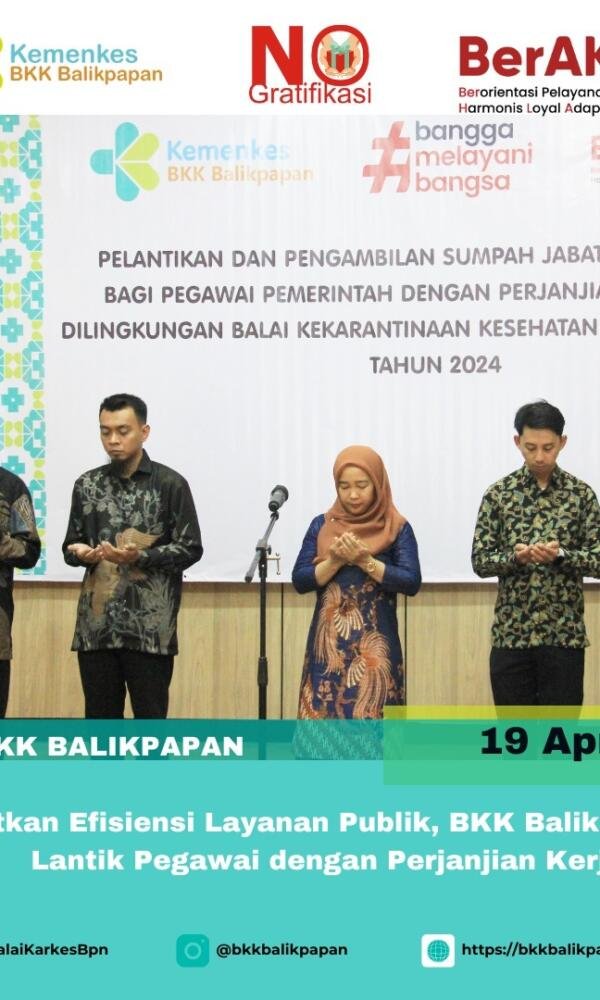 Pelantikan dan Pengambilan Sumpah Pegawai Pemerintah dengan Perjanjian Kerja di Lingkungan BKK Kelas I BalikpapanAdmin KKP Balikpapan19/04/2024
