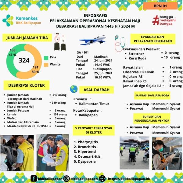 Berikut kami sajikan data infografis pelaksanaan operasional kesehatan haji Debarkasi Balikpapan 2024 M /1445 H untuk Kloter 1