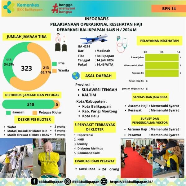 Berikut kami sajikan data infografis pelaksanaan operasional kesehatan haji Debarkasi Balikpapan 2024 M /1445 H untuk Kloter 14