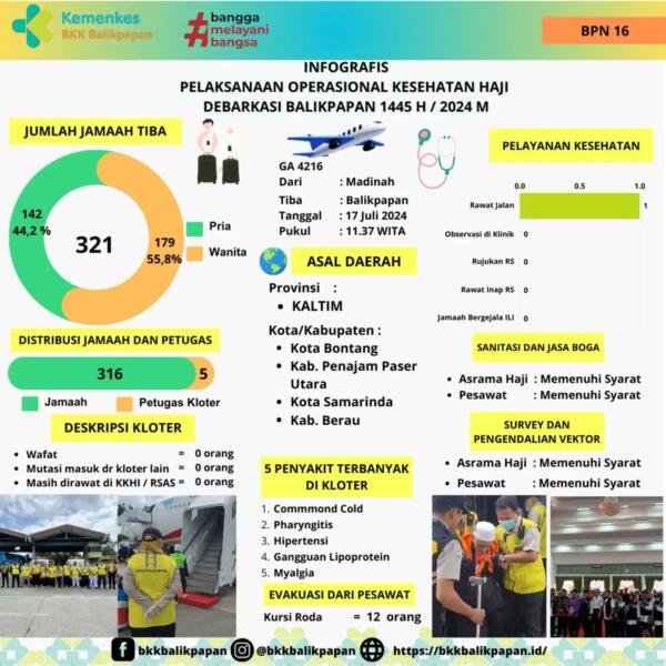 Berikut kami sajikan data infografis pelaksanaan operasional kesehatan haji Debarkasi Balikpapan 2024 M /1445 H untuk Kloter 16