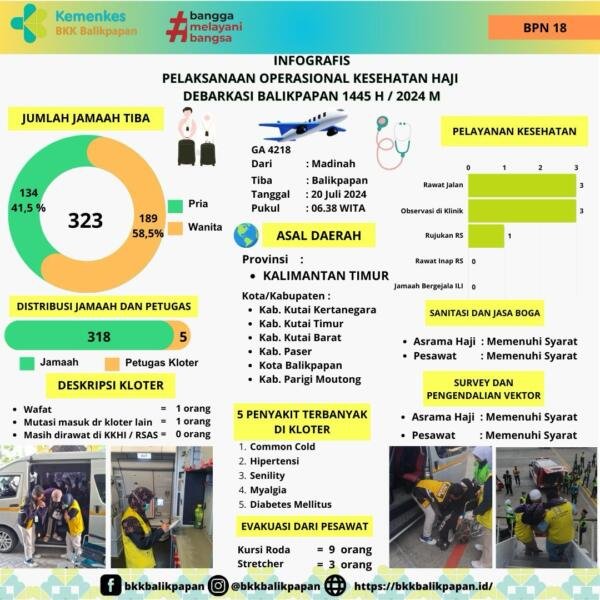 Berikut kami sajikan data infografis pelaksanaan operasional kesehatan haji Debarkasi Balikpapan 2024 M /1445 H untuk Kloter 18