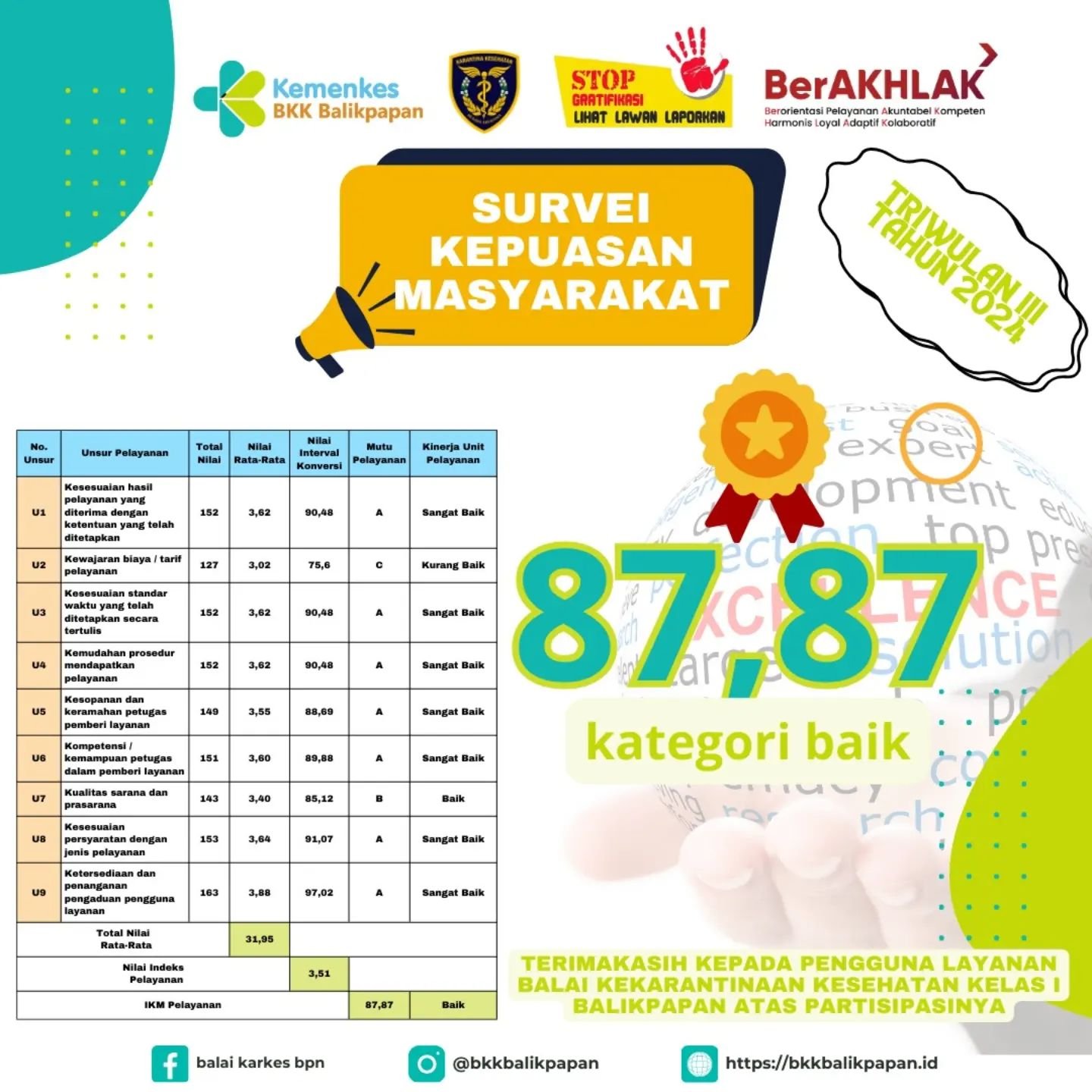 Berikut adalah Laporan Survey Kepuasan Masyarakat terhadap layanan yang dilakukan pada periode IV tahun 2022 di Kantor Kesehatan Pelabuhan Kelas II Balikpapan